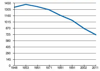 | 1 358 | 1 422 | 1 368 | 1 298 | 1 160 | 1 050 | 857[2] | 713[1] |
