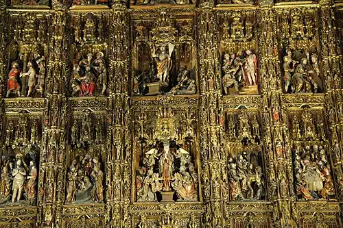 Il a été conçu par le sculpteur flamand Pierre Dancart (es) en 1482, et est considéré comme le plus grand et somptueux des retables de toute la chrétienté. Il a été réalisé en plus de 80 ans et a été achevé en 1564. Cette réalisation a nécessité la collaboration successive de plusieurs sculpteurs espagnols et étrangers qui ont continué le travail de Dancart, parmi lesquels Pedro Millán, Jorge Fernández Alemán, Roque Balduque, Juan Bautista Vázquez le Vieux et Pedro de Heredia.