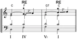 - Plus rare, le retard inférieur peut se produire sur la fondamentale, la tierce ou la quinte. Généralement, on ne l'utilise que lorsqu'il est situé à un demi-ton diatonique de la note retardée.