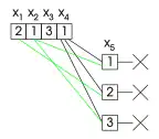 Formellement, une contrainte est préférée à un autre si l'indice le plus élevé d'une variable dans mais pas dans est inférieur à l'indice le plus élevé d'une variable dans mais pas dans . En d'autres termes, à l'exclusion des variables communes, la contrainte qui possède les variables de plus bas indice est préférée.