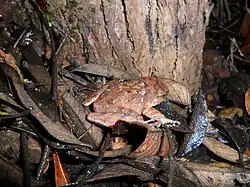Rhinella pombali est un amphibien qui résulte de l'hybridation entre deux espèces : Rhinella ornata et Rhinella crucifer[1].