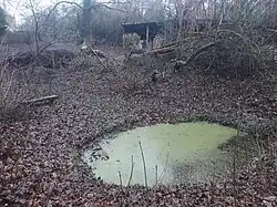 La source principale actuelle est située en aval d'une ancienne décharge. Néanmoins elle produit une eau très claire, comme en témoigne une large dépôt de tuf calcaire, nommé "cron" ou "cranière" en Wallon. Il y a également présence de gours. De telles sources pétrifiantes sont assez rares au nord de la Meuse[17]. On y trouve une mousse extrêmement rare Campylium stellatum[18].