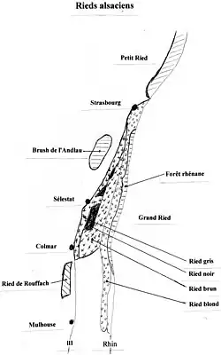 - Le Petit Ried s'étend de la forêt de la Robertsau, à Strasbourg, jusqu'à Lauterbourg