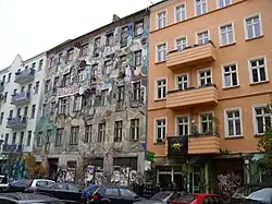 - ↑ Das Hausprojekt könne als „zentrale Institution der gewaltbereiten autonomen Szene Berlins bezeichnet werden“
