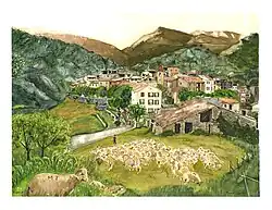 Vue du village en descendant du plateau de Dina. | |||||