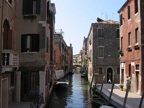 - Ponte Ruga Bella, sans surprise selon Dezan, cette dénomination vint du charme du site ou del Forner reliant la calle va in campo Nazario Sauro au Campo San Giacomo de l'Orio