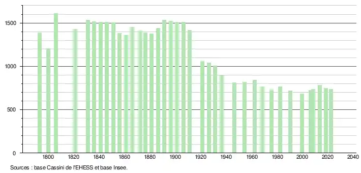 - ↑ Fiches Insee - Populations de référence de la commune pour les années 2006, 2007, 2008, 2009, 2010, 2011, 2012, 2013, 2014, 2015, 2016, 2017, 2018, 2019, 2020, 2021 et 2022.