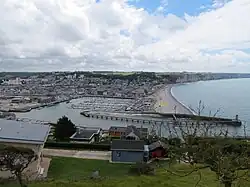 Le directeur de production, Nicolas Trabaud, explique le choix de Fécamp : « La série a été imaginée et écrite pour Dieppe, car l'auteur est Dieppois. Il avait pensé aux décors qui l'entouraient, mais, lors des premiers repérages que nous avons effectués en mai, on a constaté qu'au-delà d'une ville très belle et d'un front de mer gigantesque, c'était trop grand pour nous »[16]. Par ailleurs, la position du port de Dieppe, un peu en arrière du front de mer, n'est pas jugée idéale[16]. Nicolas Trabaud ajoute que la production a opté pour la ville de Fécamp, « plus petite et moins étendue », car elle a « des butées au niveau du front de mer », sans « aplats trop longs »[16]. Le réalisateur David Hourrègue confirme les raisons de ce choix : « En arrivant à Dieppe, j'ai réalisé que je recherchais quelque chose de beaucoup plus familial et de plus intime. À Fécamp, ces deux falaises renfermaient cette petite communauté. J'avais une obsession : que tous les décors se situent dans un rayon d'un kilomètre maximum pour créer un univers à la fois très cohérent et très tangible. Et pour ça, Fécamp s'est imposée comme une évidence. »[17].