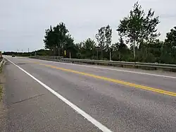 - 5,1 km vers l'ouest plus ou moins en parallèle à la rive de la baie de Mille-Vaches, jusqu’à la route 138 ;