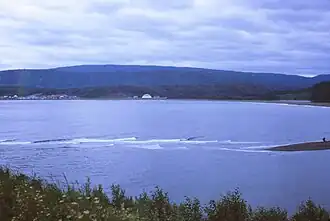 - 2,0 km vers le nord-ouest, bordée par un isthme (du côté nord-est) jusqu'à la hauteur du Cap de la Madeleine, soit la confluence de la rivière[2].