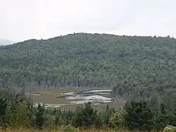 - 2,2 km vers le nord, en traversant la limite entre les municipalités de Saint-Jacques-le-Majeur-de-Wolfestown et de Disraeli, jusqu'à l'embouchure du "Mud Pond" (longueur : 0,6 km ; altitude : 346 m) que le courant a traversé sur sa pleine longueur ;