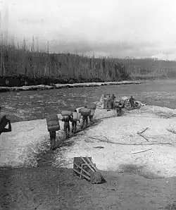 La rivière tire son nom d'un mot de la langue crie qui signifie esclave “ Les Cris ont remplacé d'autres peuples indigènes de la région.