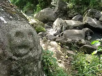 Plan d'eau de la rivière devant les roches gravées de la rivière du Plessis | |