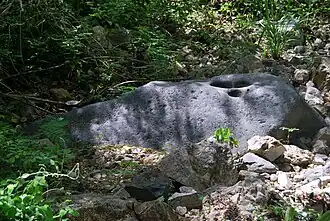 En amont, à quelques mètres de cette roche gravée se trouve un puits daté du , encore utilisé aujourd'hui.