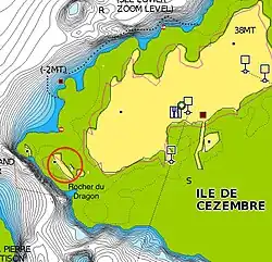 Le rocher du dragon est situé à une dizaine de mètres au sud-ouest de l'île de Cézembre[5][réf. nécessaire]