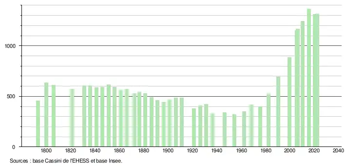 - ↑ Fiches Insee - Populations de référence de la commune pour les années 2006, 2007, 2008, 2009, 2010, 2011, 2012, 2013, 2014, 2015, 2016, 2017, 2018, 2019, 2020, 2021 et 2022.