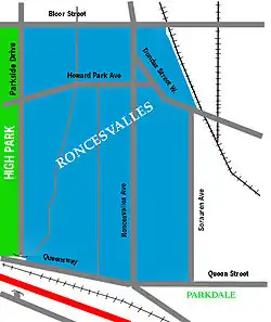 Roncesvalles est un quartier de la ville de Toronto, en Ontario, au Canada, se situant de part et d'autre de la rue Roncesvalles Avenue sur la portion allant de Queen Street à Dundas Street. Le quartier est bordé à l'ouest par High Park, au sud par Queen Street, au nord par Bloor Street et Dundas Street et à l'est par Sorauren Avenue. Autrefois connu sous le nom de Howard Park, la zone faisait partie des villages de Parkdale et Brockton, englobés dans Toronto dans les années 1880.