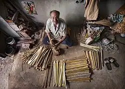 Artisan fabriquant des boites à partir de palmiers à Rosette. Septembre 2018.