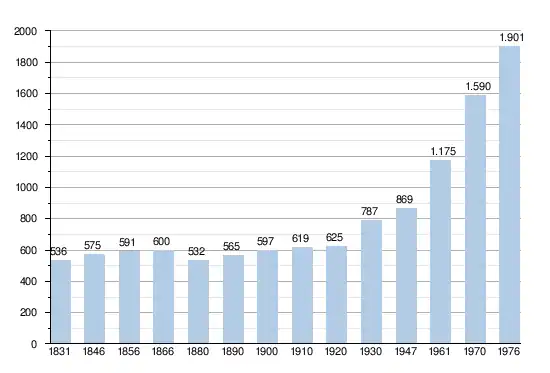 - Sources:INS, Rem:1831 jusqu'en 1970=recensements, 1976= nombre d'habitants au 31 décembre