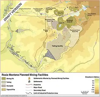 Le site fait l'objet d'un projet d'exploitation de mine d’or à ciel ouvert, à base de cyanure. Depuis 1997, les habitants de Rosia Montana luttent contre ce projet qui ravagerait leur village[4].