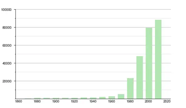 | 1980 | 23 337 | ▲ +329,78 % | |