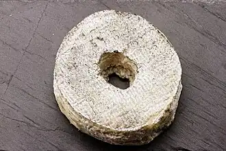 Le fromage est de forme cylindrique de 10 cm de diamètre sur 3,5 cm de hauteur avec un trou au centre. Il pèse environ 250 grammes et est issu de l'égouttage d'une pâte lactique. Sa surface est sèche, blanche ou cendrée[5].