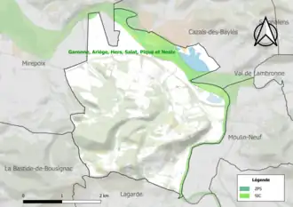 Le réseau Natura 2000 est un réseau écologique européen de sites naturels d'intérêt écologique élaboré à partir des directives habitats et oiseaux, constitué de zones spéciales de conservation (ZSC) et de zones de protection spéciale (ZPS)[Note 3]. Un site Natura 2000 a été défini sur la commune au titre de la directive habitats : « Garonne, Ariège, Hers, Salat, Pique et Neste »[25], d'une superficie de 9 581 ha, un réseau hydrographique pour les poissons migrateurs, avec des zones de frayères actives et potentielles importantes pour le Saumon en particulier qui fait l'objet d'alevinages réguliers et dont des adultes atteignent déjà Foix sur l'Ariège[26].