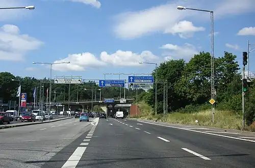 Lae tronçon de Fredhäll à Brommaplan est commun avec la Drottningholmsvägen. De Brommaplan à Hjulsta, elle est composée de la Bergslagsvägen.