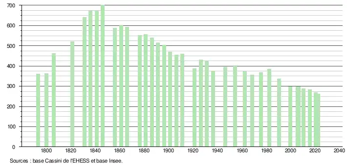 - ↑ Population municipale de référence en vigueur au 1er janvier 2025, millésimée 2022, définie dans les limites territoriales en vigueur au 1er janvier 2024, date de référence statistique : 1er janvier 2022.