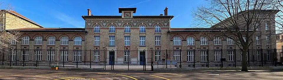 - Collège Jean-Jaurès, construit en 1933-1934, qui intègre les bâtiments du Groupe scolaire du Centre, école créée en 1883[3], et d'un ancien gymnase destiné aux pompiers[4]. Ce gymnase fut construit en 1902 par l'architecte César Auguste Mancel[5].