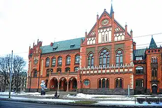 - Le bâtiment principal de la Banque de Lettonie est situé au 2a, rue Krišjāņa Valdemāra. Il a été construit entre 1901 et 1905 par l'architecte Augusts Reinbergs.