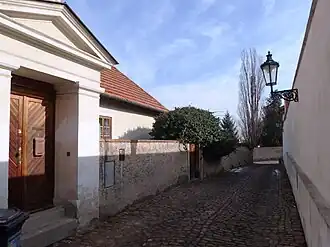 La ruelle pavée, faisant moins de 100 mètres, a été créée au tournant des XVIIe et XVIIIe siècles en utilisant un remblai artificiel pour séparer le mur du jardin du palais Černín et le mur du cimetière dans la partie nord de la rue[1].