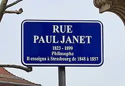 - 1 2 3 Moszberger, « Paul-Janet (rue) », in Dictionnaire historique des rues de Strasbourg, op. cit., p. 168-169 (ISBN 9782845741393)