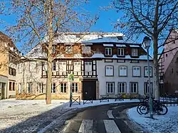 - Formant l'angle avec l'actuelle rue Finkwiller, côté est, une maison est attestée en 1694 lorsque la fondation Saint-Marc la vend à un tonnelier. Sur le plan-relief de 1727, elle ne possède qu'un étage. À la fin du XIXe siècle un deuxième étage et des mansardes sont ajoutés[6].