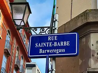 Des plaques de rues bilingues, à la fois en français et en alsacien, sont mises en place par la municipalité à partir de 1995[3]. C'est le cas de la Barweregass.