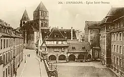 L'église Saint-Thomas depuis la rue de la Monnaie (2016). | |