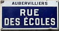 - ↑ Aubervilliers, la rue des écoles, prise de la rue des Cités (vers l’avenue de la République).
