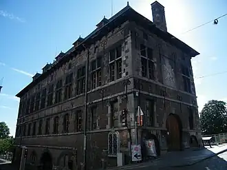 - ↑ La porte du bâtiment est surmontée des armoiries (toujours visibles) de Philippe II, roi d’Espagne