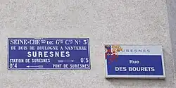 - ↑ Suresnes, ses lieux dits et ses rues vous parlent, Société historique de Suresnes, 1968.