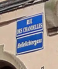 Des plaques de rues bilingues, à la fois en français et en alsacien, ont été mises en place par la municipalité à partir de 1995[5]. C'est le cas de la Hellelichtergass.
