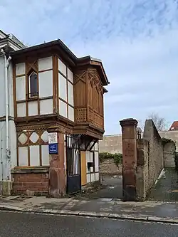 Maison à colombages au no18.Sur l'emplacement de l'actuelle maison à colombages se trouvaient les glacières et la demeure du «sieur Saum» mentionné par Adolphe Seyboth en 1765[8].