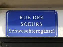 Des plaques de rues bilingues, à la fois en français et en alsacien, sont mises en place par la municipalité à partir de 1995[3]. C'est le cas du Schweschteregässel.