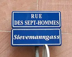 Des plaques de rues bilingues, à la fois en français et en alsacien, ont été mises en place par la municipalité à partir de 1995[4]. C'est le cas de la Sievemanngass.