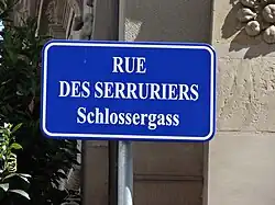 Des plaques de rues bilingues, à la fois en français et en alsacien, ont été mises en place par la municipalité à partir de 1995[5]. C'est le cas de la Schlossergass.