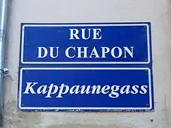 Des plaques de rues bilingues, à la fois en français et en alsacien, sont mises en place par la municipalité à partir de 1995[6]. C'est le cas de la Kappaunegass.