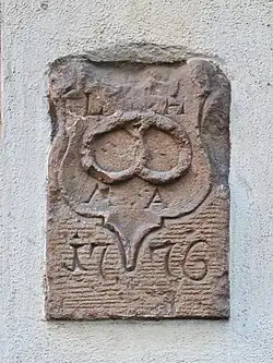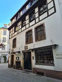 - À partir de 1578, cet emplacement est occupé par une boulangerie. La maison à colombages actuelle, qui forme l'angle avec la rue de Grange, peut être datée du milieu du XVIIIe siècle selon une plaque gravée portant son nom, Zum Jüngling (« Au Jeune Homme »), et la date 1759[2].