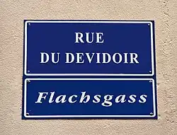 Des plaques de rues bilingues, à la fois en français et en alsacien, sont mises en place par la municipalité à partir de 1995[3]. C'est le cas de la Flachsgass (« rue du Lin[1] »).