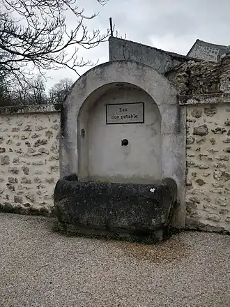 - Fontaine du bas de la Vallée, dite La Coulette[5]. Les eaux de cette fontaine sont captées en souterrain au lieudit La Fontaine d'Orme, puis traverse par une canalisation le parc des Étangs[6]. Elle fut construite avant 1641[7] par Claude Delanoue, marchand orfèvre à Paris[8]. En 1835, l'acte de vente du domaine des Étangs appartenant à Antoine Lesage, maire de la ville, et acquis par Marie de Mothes de Blanche, mentionne l'existence dans la rue, d'un bassin alimenté par la fontaine et destiné à l'usage et aux commodités de la population[9].