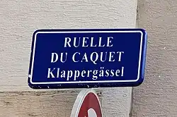 À partir de 1995, des plaques de rues bilingues, à la fois en français et en alsacien, sont mises en place par la municipalité lorsque les noms de rue traditionnels étaient encore en usage dans le parler strasbourgeois[6]. Le nom de cette ruelle est alors sous-titré Klappergässel.