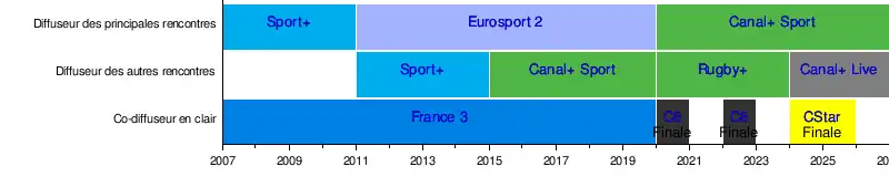 | France Télévisions et Eurosport | 2006-2010 | France Télévisions et Eurosport se partagent la diffusion de la Challenge Cup pour les saisons 2006-2007 à 2009-2010[25]. |